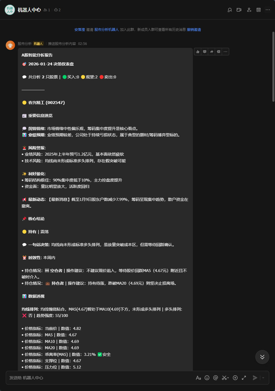 随后按照指示运行代码后,过一会就能看到报告发给了我的飞书