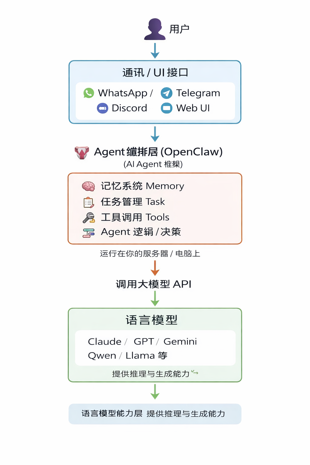 **AI Agent从来不是一个全新的概念。**但OpenClaw本身并不是人工智能——它只是一个“翻译官”和“执行官”。真正聪明的,是它背后接入的语言模型(比如GPT、Claude、Gemini等)。
