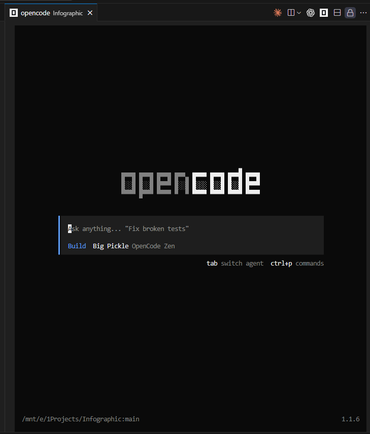 文档写着运行 /connect 命令来选择 Provider,那么可以看到其实刚刚应该是OpenCode给我提供了一个 free model ”big-pickle“